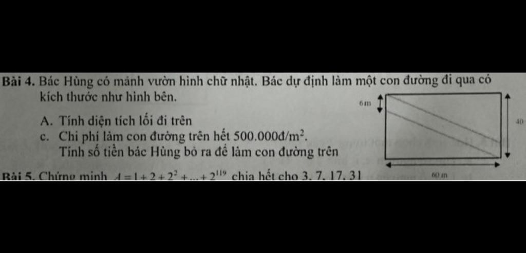 `b,` Số tiền bác Hùng bỏ ra để làm con đường trên là `:`