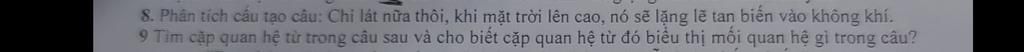 8. Phân tích cấu tạo câu: Chỉ lát nữa thôi, khi mặt trời lên cao, nó sẽ lặng lẽ tan biến vào không khí.