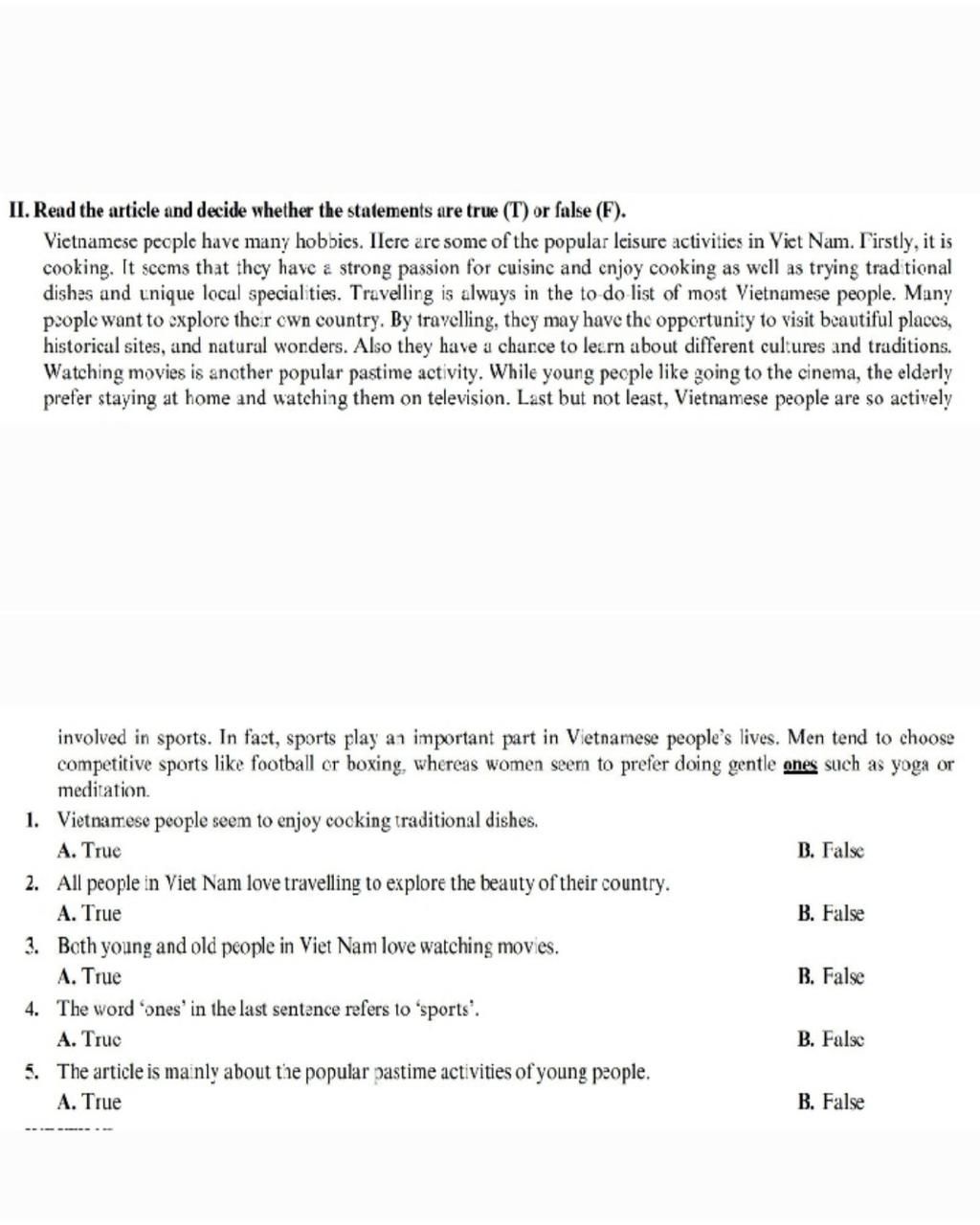 II. Read the article and decide whether the statements are true (T) or false (F).