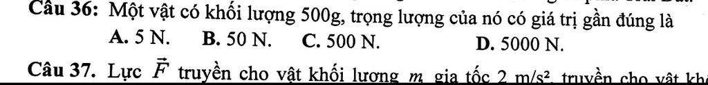 `P = 10.m = 10 . 0,5 = 5 (N)`.
