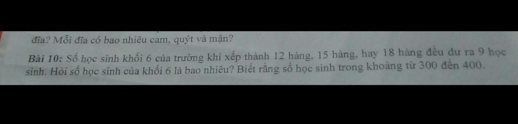 Vì khi xếp thành 12 hàng,15 hàng,18 hàng đều dư ra 9 học sinh nên số học sinh là `BC(12,15,18)` cộng thêm cho 9