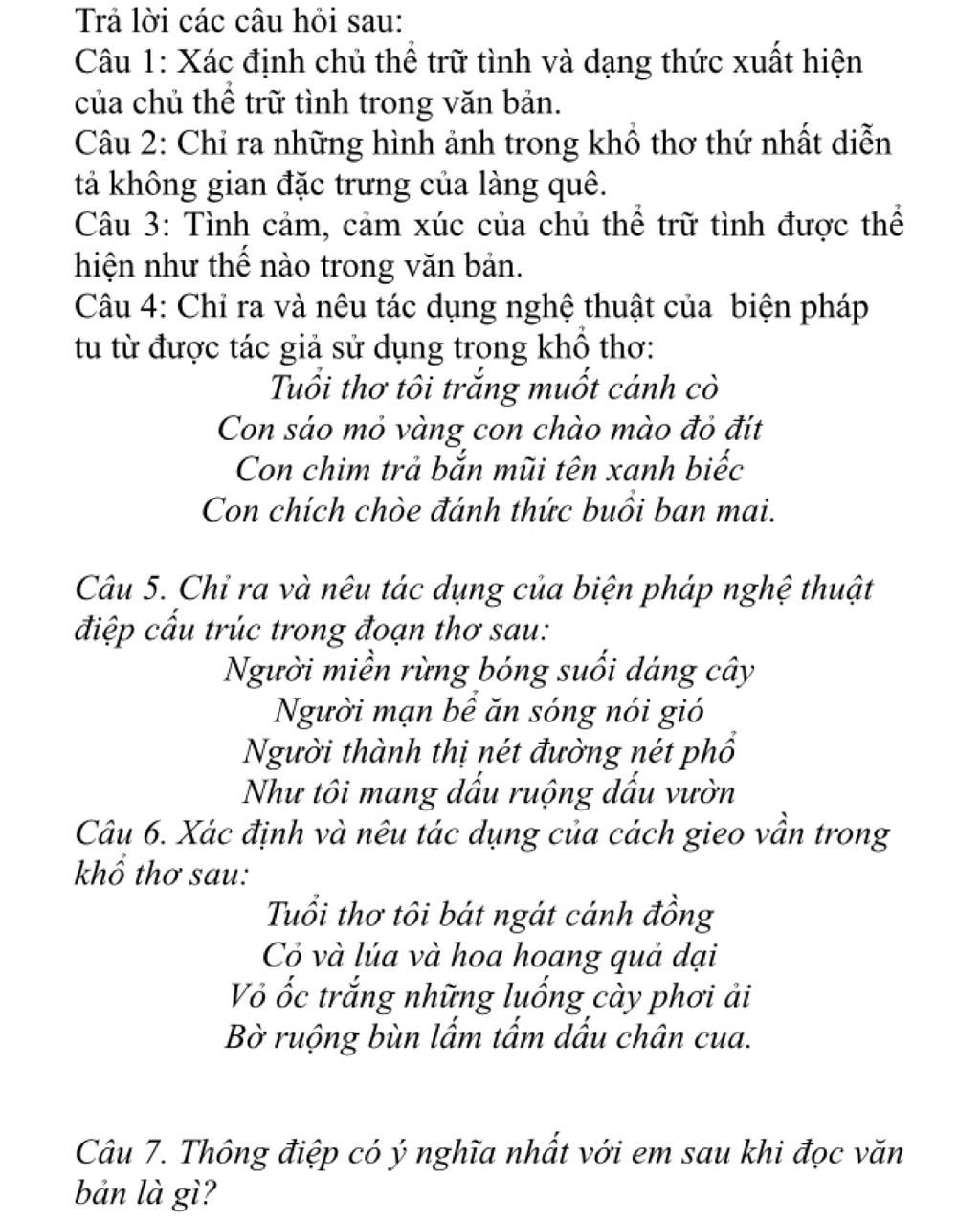 Câu 1: Xác định chủ thể trữ tình và dạng thức xuất hiện