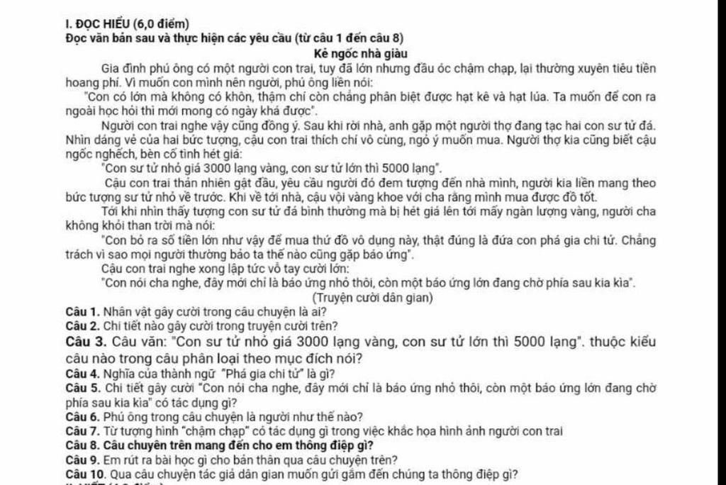 Đọc văn bản sau và thực hiện các yêu cầu (từ câu 1 đến câu 8)