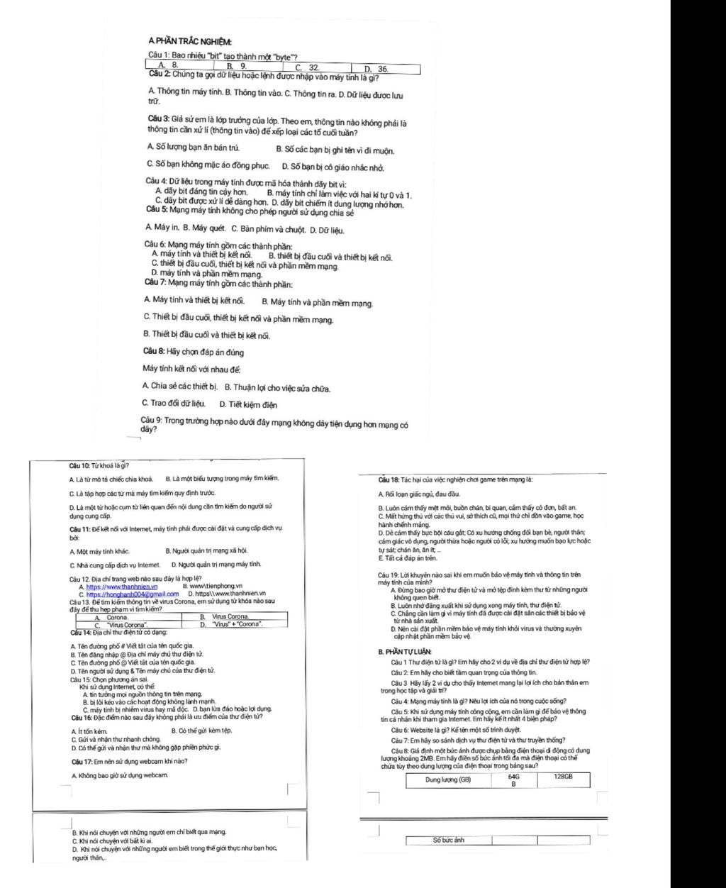Câu 1: Bao nhiêu "bit" tạo thành một "byte"