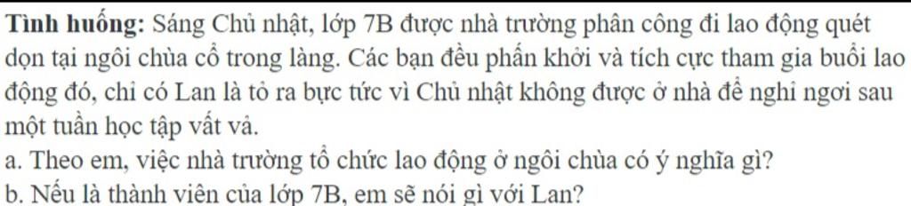 Em sẽ nói vs Lan rằng vì đây là hoạt động có ích cho xã hội và giúp cho không khí trong làng trở nên sạch sẽ và tươi mới hơn nên bạn ko nên có thái độ như vậy