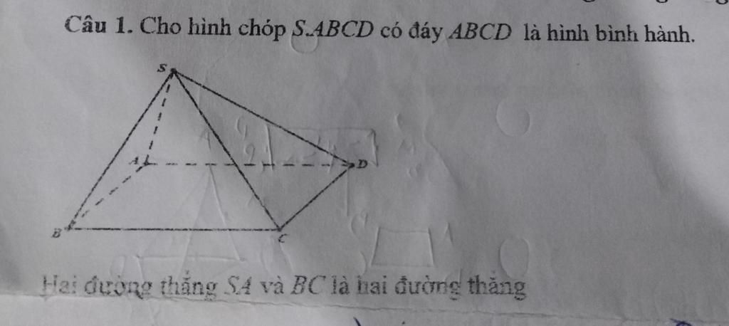 `@`Hình chóp `S.ABCD` trên có `SA` và `BC` là hai đường thẳng chéo nhau.