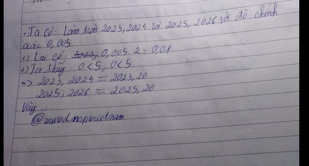 Làm tròn 2023,2024,2025,2026 với độ chính xác 0,005 trình bày các bước cho mình với ạ
