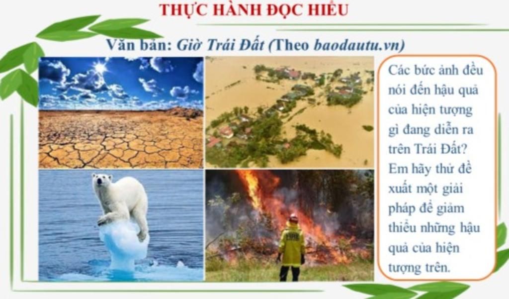 Các bức ảnh đều nói đến hậu quả của hiện tượng gì đang diễn ra trên Trái Đất? Em hãy thử đề xuất một giải pháp để giảm thiểu những hậu quả của hiện tượng trên.
