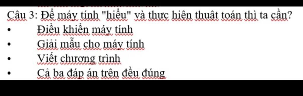 Để máy tính hiểu và thực hiện thuật toán thì ta cần phải viết chương trình.Khi viết chương trình thì máy tính sẽ có thể lựa các thuật toán phù hợp để mà giải bài.