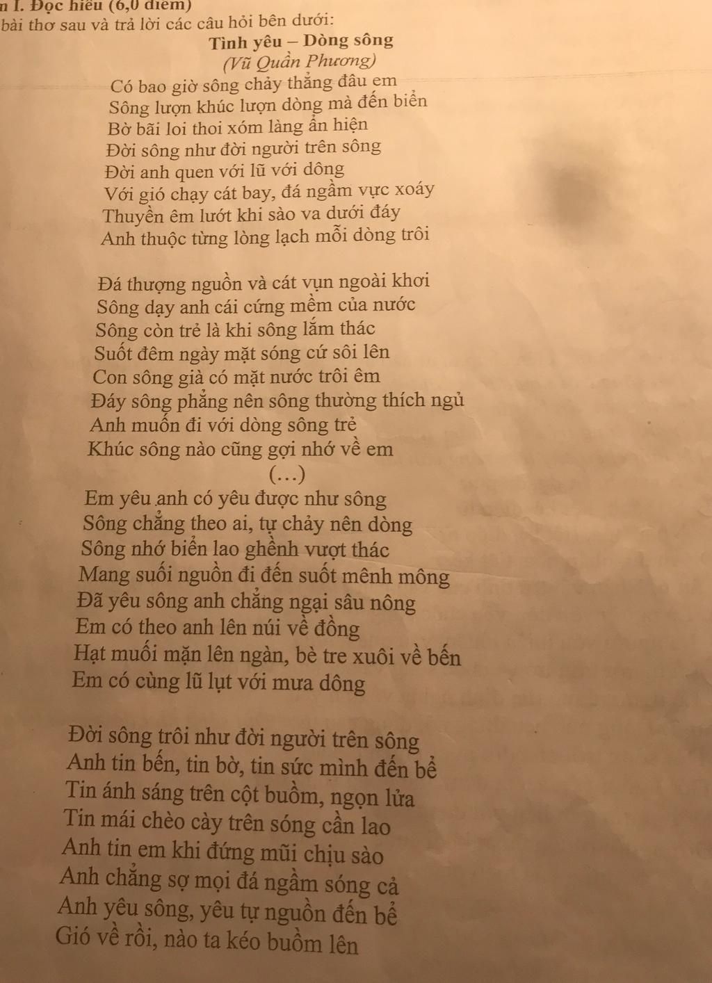 bài thơ sau và trả lời các câu hỏi bên dưới: