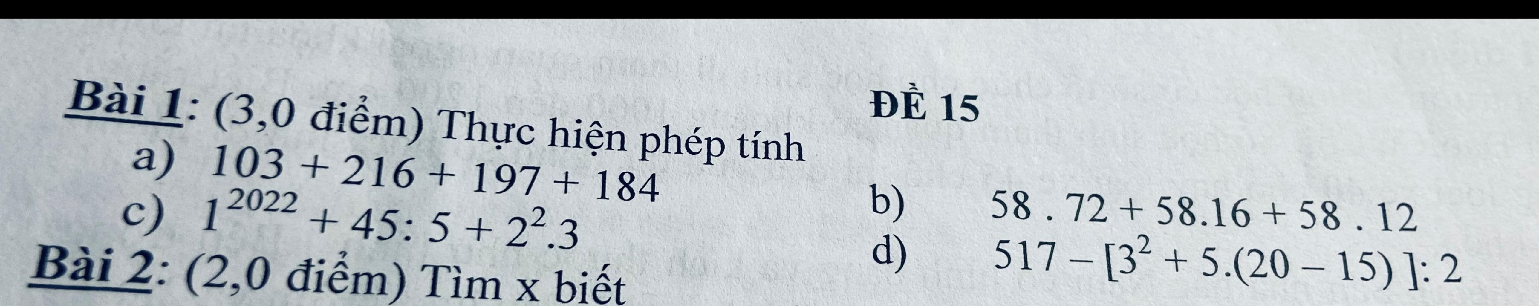 b) 58 . 72 + 58 . 16 + 58 . 12