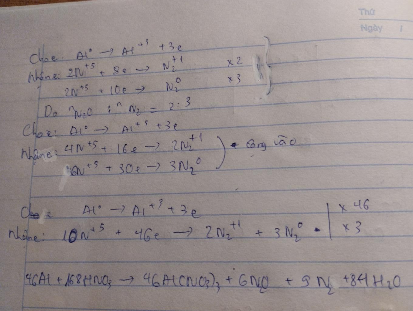 Tỉ lệ `n_(Al) : n_(N_2O) : n_(N_2) = 46 : 6 : 9`