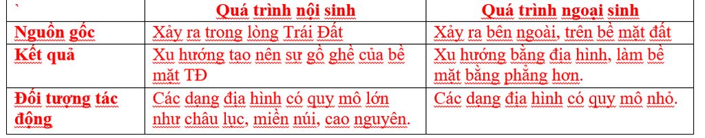 Là các quá trình xảy ra trong lòng Trái Đất.
