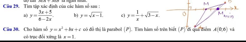 Câu 29. Tìm tập xác định của các hàm số sau :