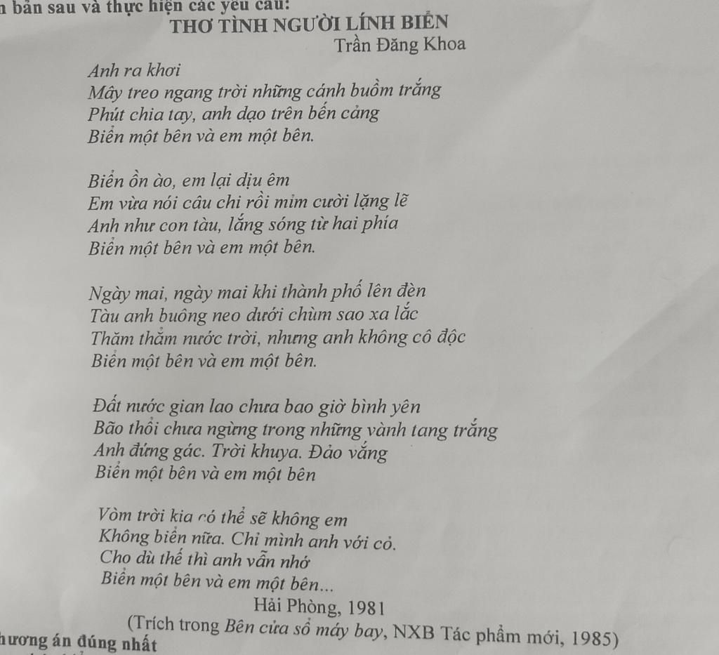 8, Bài thơ có hình ảnh được nhắc đi nhắc lại "Biển một bên và em một bên"