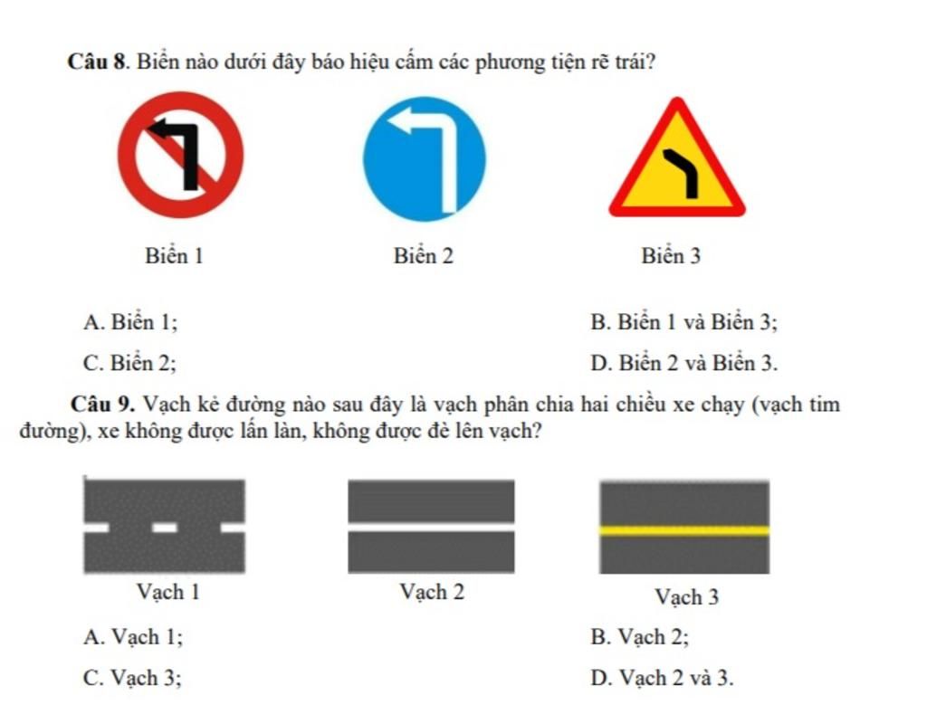 Câu 8. Biển nào dưới đây báo hiệu cấm các phương tiện rẽ trái?