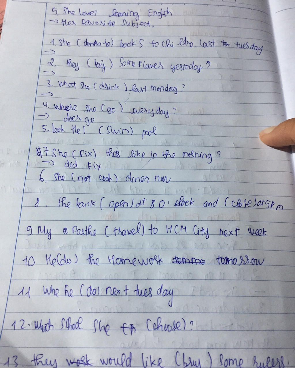 $.7. She (fix) thers like in the mosning