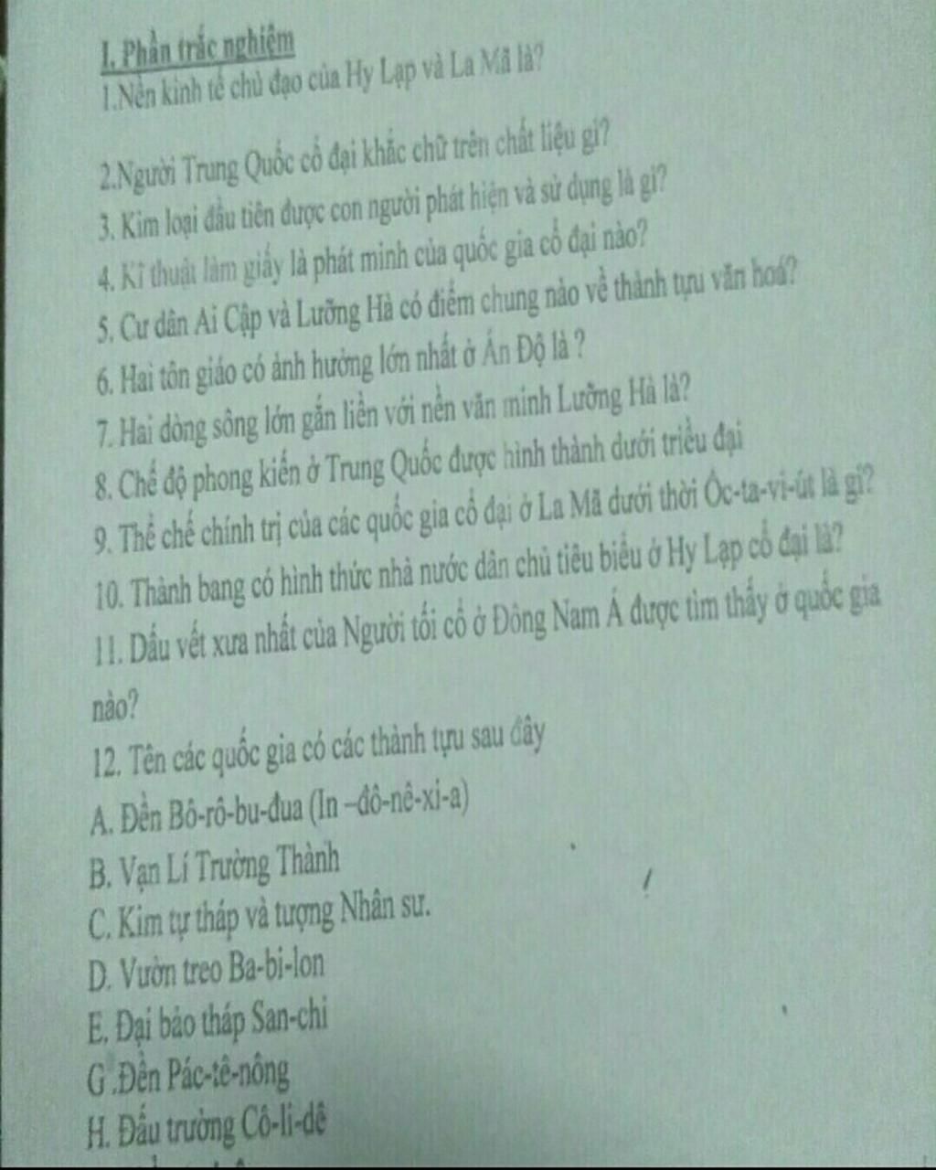 ĐỀ MÔN LỊCH SỬ -HKI -6D