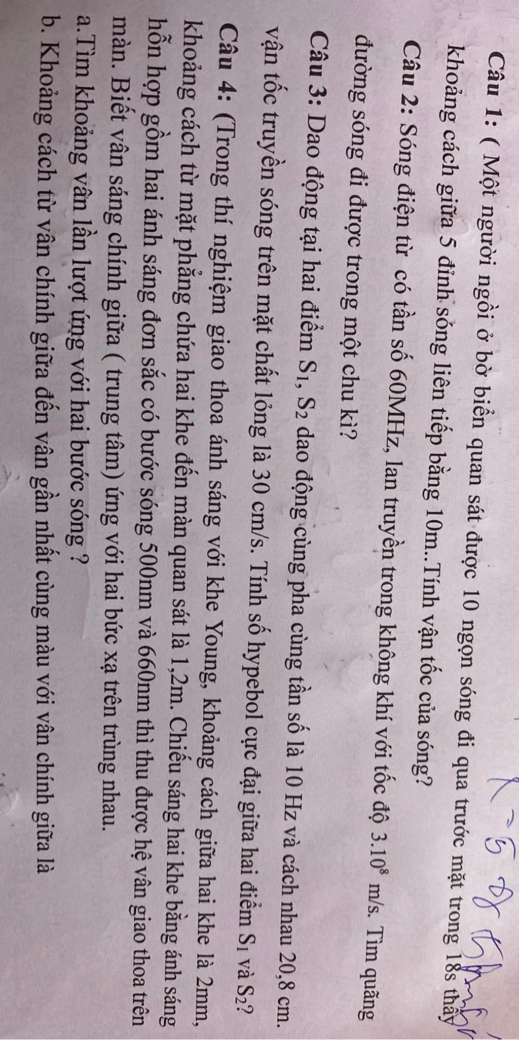Ta có: `\lambda = c/f = {3.10^8}/{60.10^6} = 5 (m)`