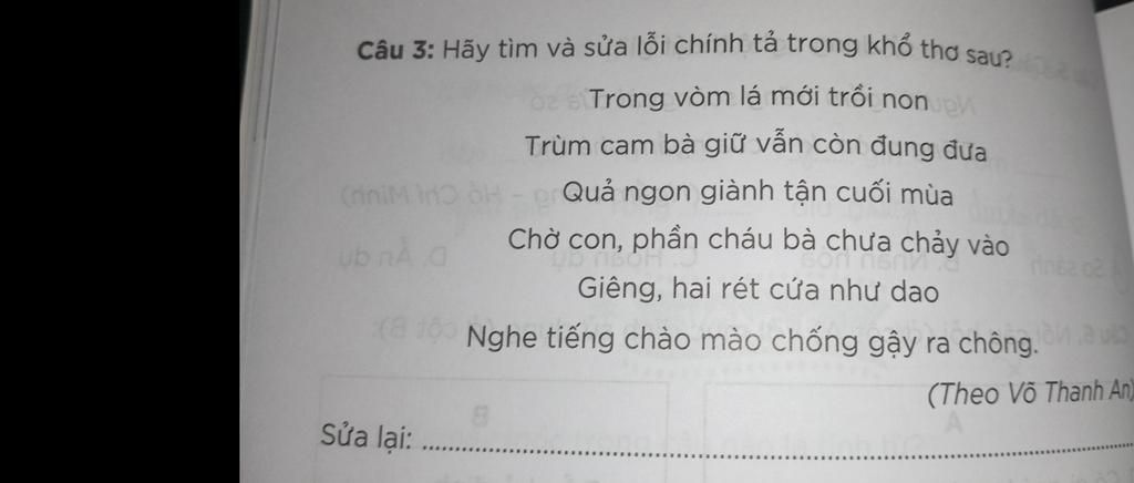 - Có 4 lỗi sai chính tả trong khổ thơ:
