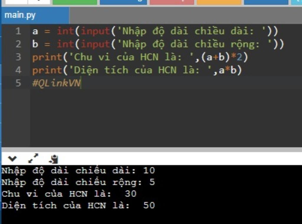 print('Diện tích của HCN là: ',a*b)