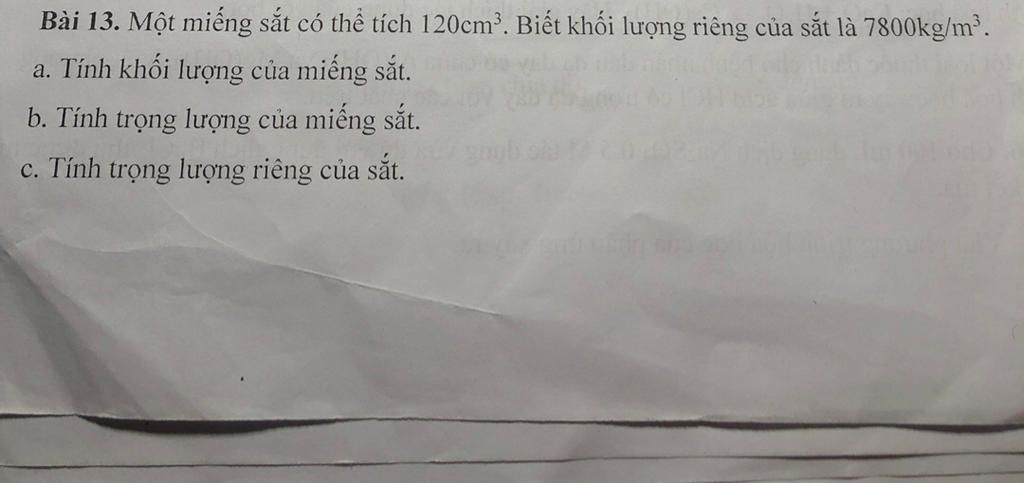 a) Đổi: \(V = 120c{m^3} = 1,{2.10^{ - 4}}{m^3}\)
