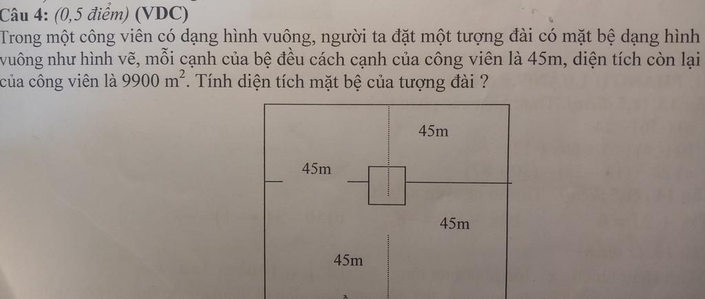 của công viên là 9900 m. Tính diện tích mặt bệ của tượng đài ?