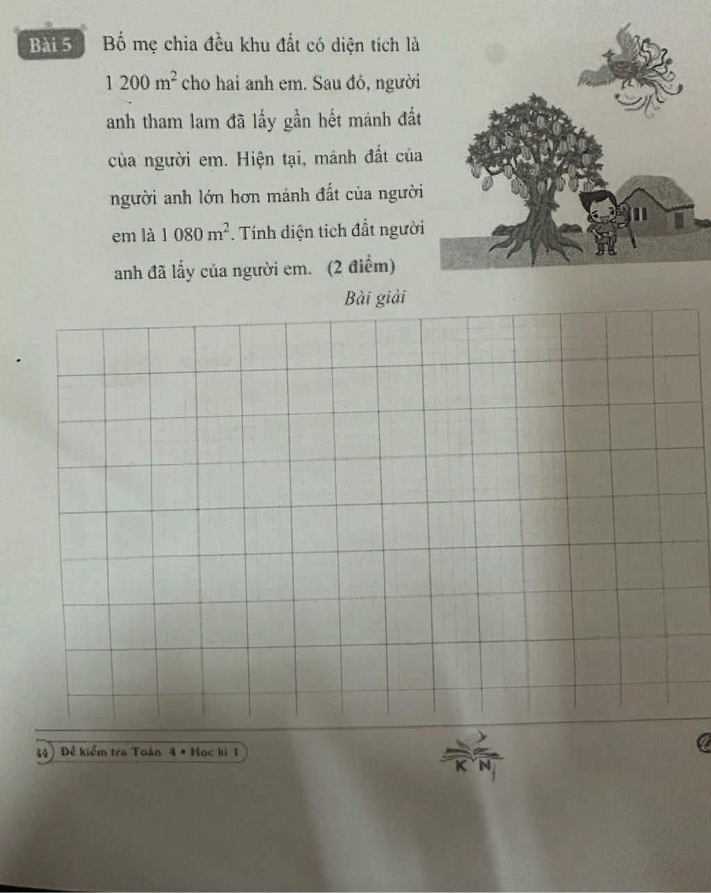 Diện tích khu đất của người anh sau khi lấy của người em là: