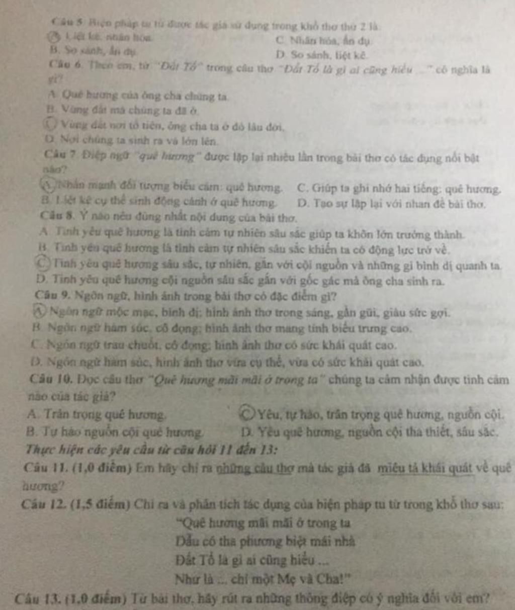 11, Câu thơ miêu tả khái quát vẻ đẹp quê hương: