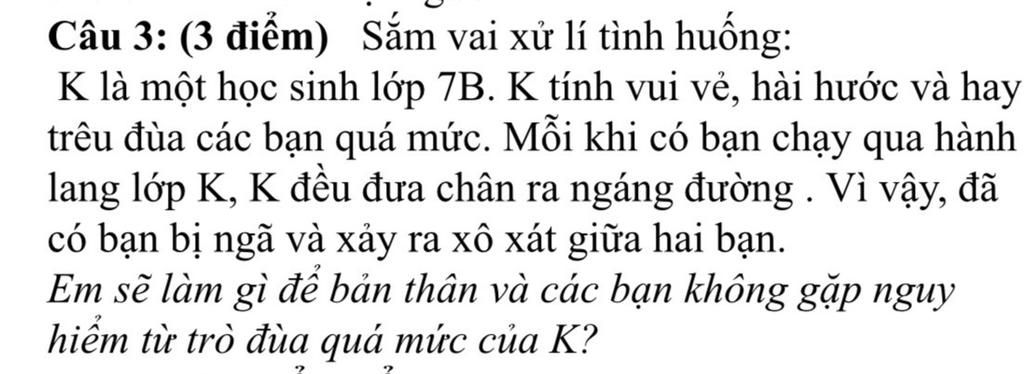 Câu 3: (3 điểm) Sắm vai xử lí tình huống: