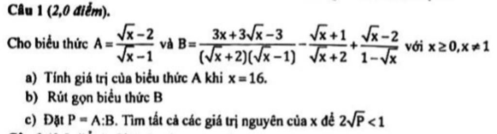 c) Đặt P = A:B. Tìm tất cả các giá trị nguyên của x để 2V/P<1