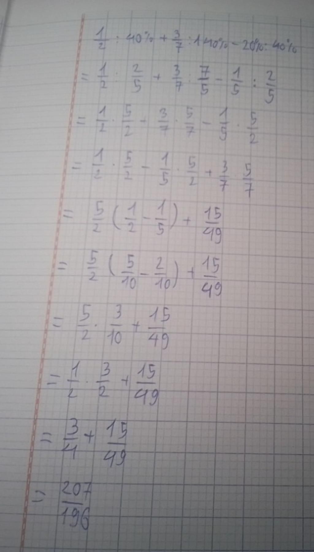 1/2 : 40% + 3/7 : 140% - 20% : 40%