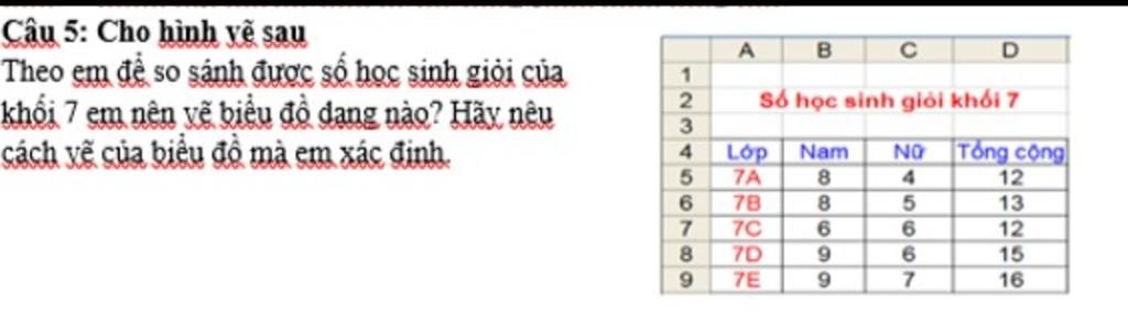 Để so sánh được số học sinh giởi của khối 7 nên vẽ dạng biểu đồ cột