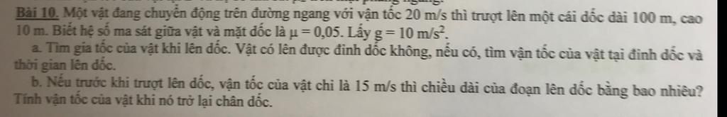 Vì quãng đường vật đi được lớn hơn chiều dài của dốc nên vật sẽ lên được đỉnh dốc.