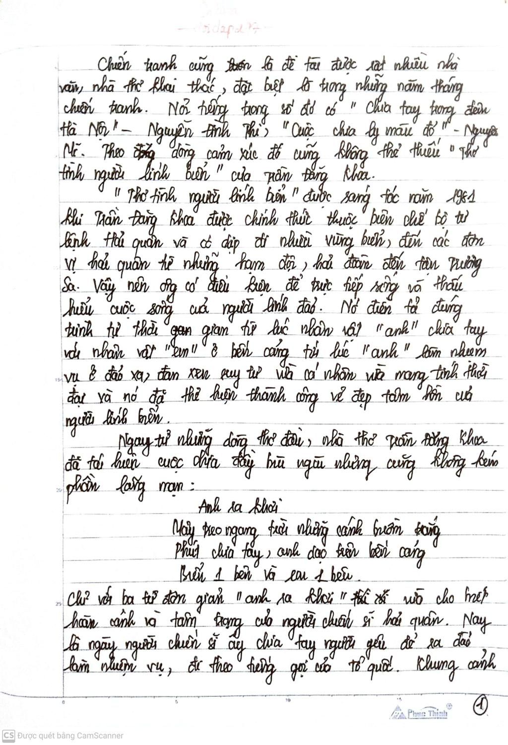 Viết một văn bản nghị luận phân tích, đánh giá nội dung và nghệ thuật bài thơ Thơ tình người lính biển" của Trần Đăng Khoa.