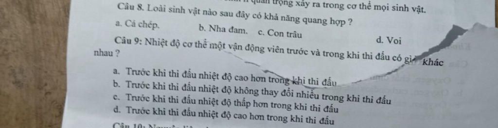 Câu 8. Loài sinh vật nào sau đây có khả năng quang hợp ?