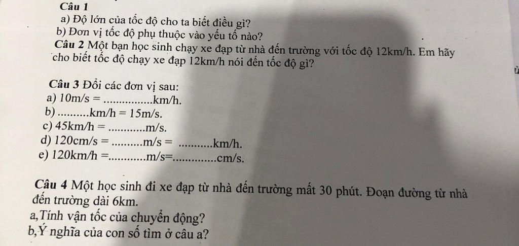 tốc độ đạp xe đạp 12km/h nói đến tốc độ từ nhà đến trường của bạn học sinh đó