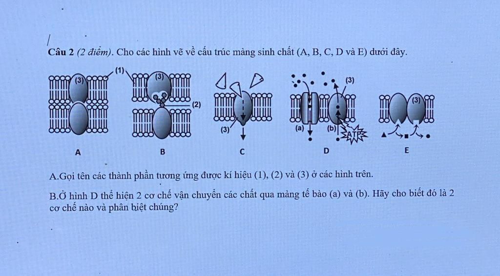 (a): vận chuyển thụ động nhờ kênh hoặc protein mang (khuếch tán tăng cường).