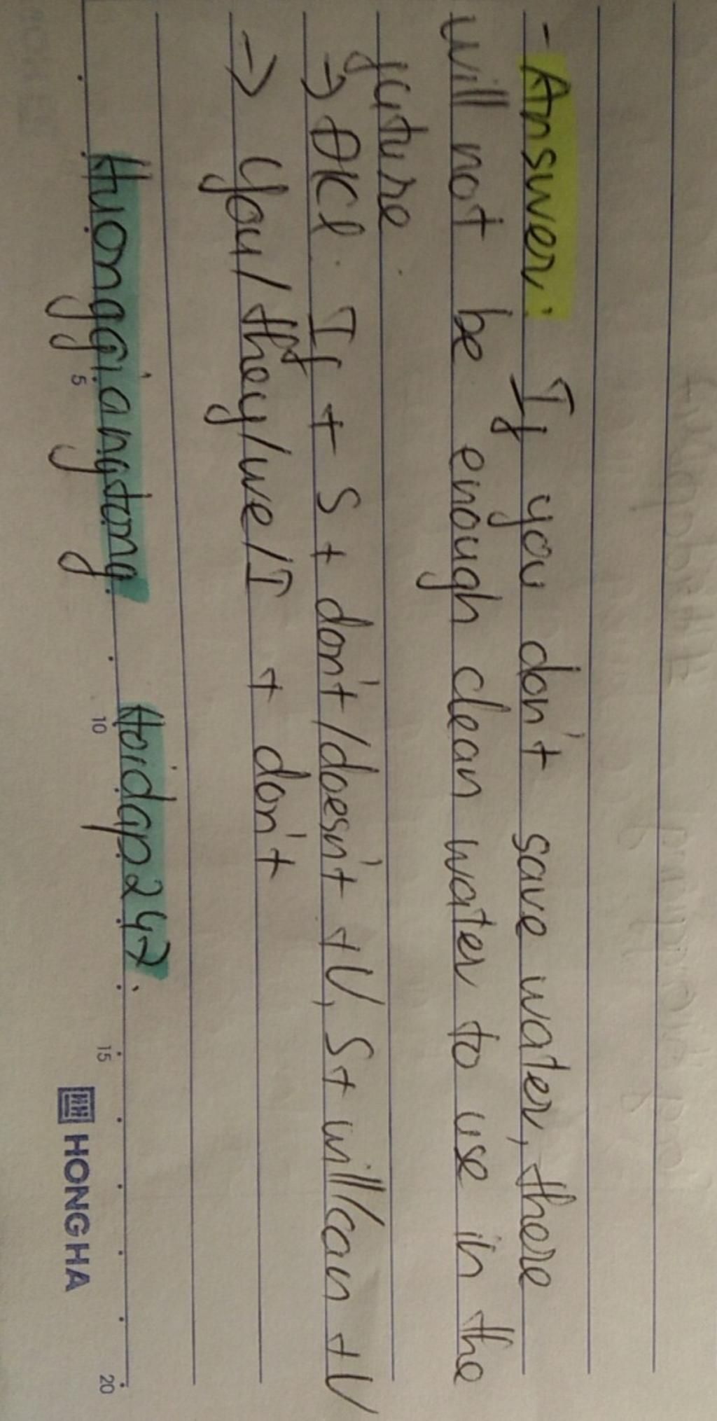 `1` If you don't save water, there won't be enough clean water to use in the future.