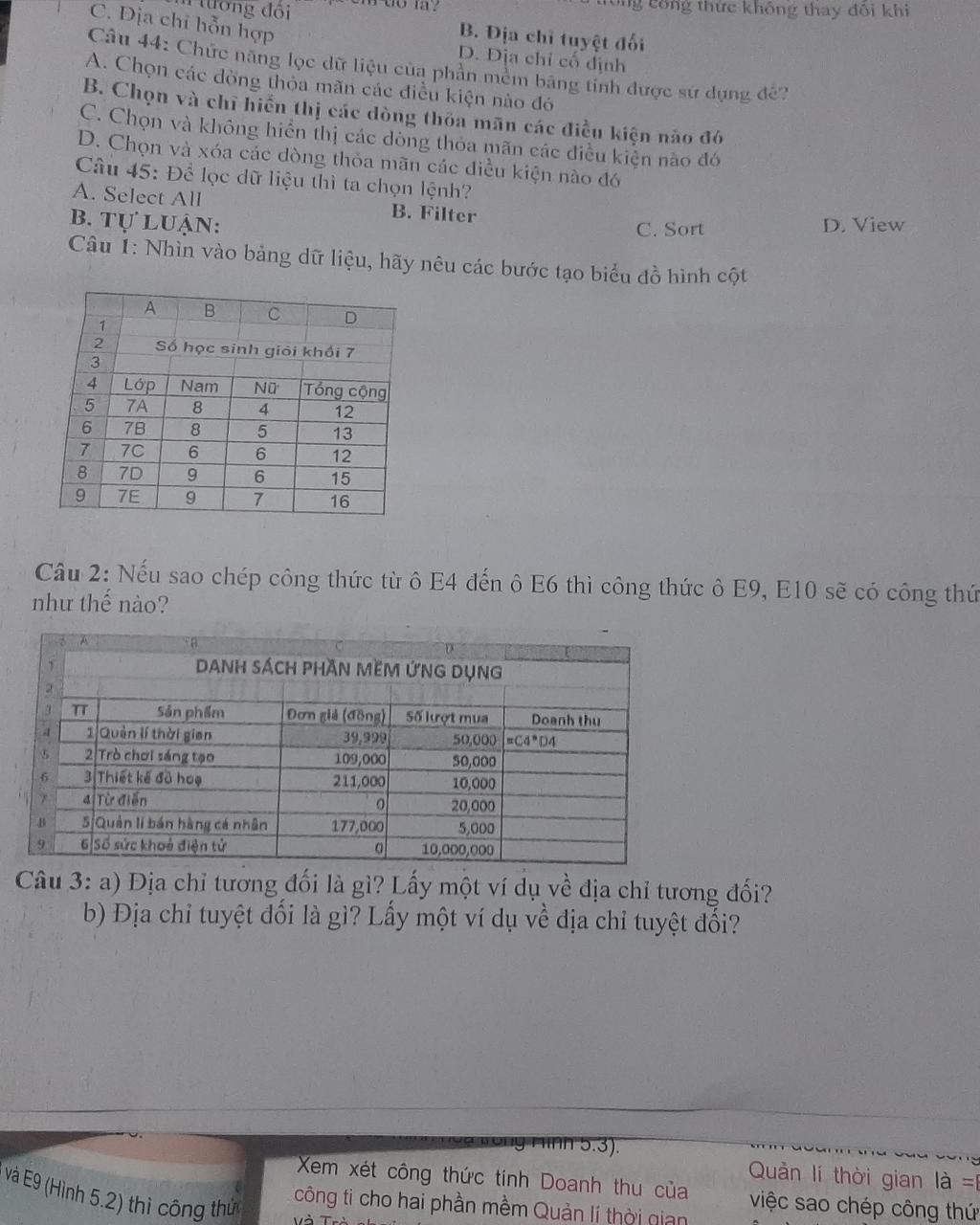 Câu 44: Chức năng lọc dữ liệu của phần mềm bang tính được sử dụng để