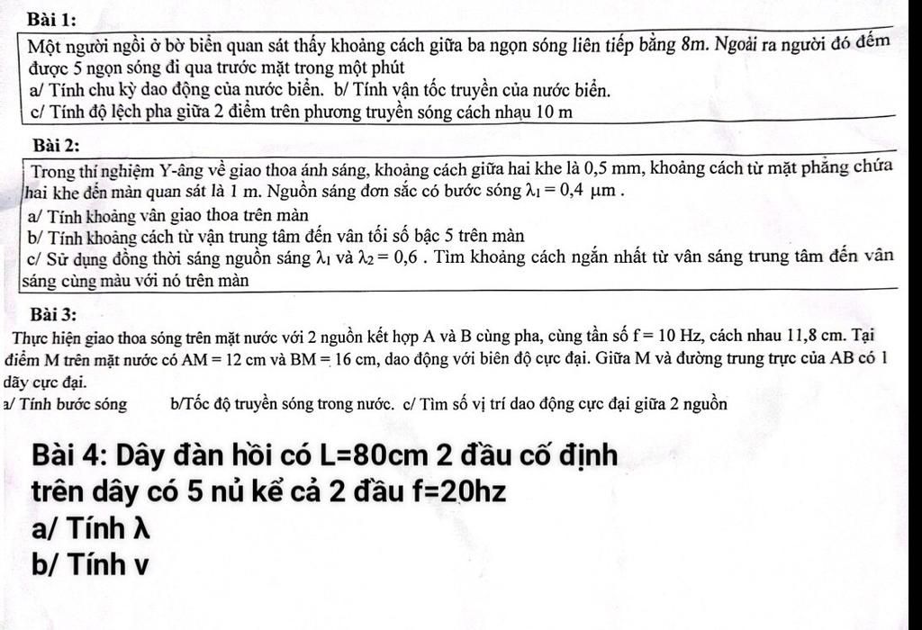 \(v = \lambda f = 40.20 = 800\left( {cm/s} \right) = 8\left( {m/s} \right)\)