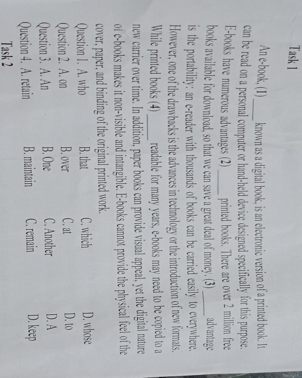 An e-book, (1) _____ known as a digital book, is an electronic version of a printed book. It