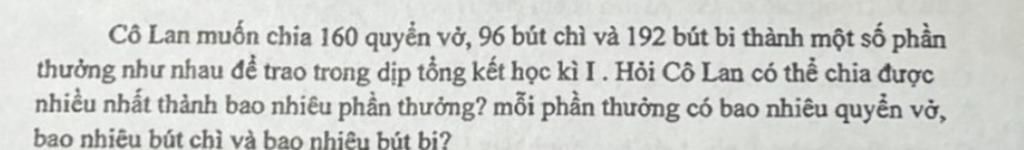 `->` vậy cô Lan có thể chia được nhiều nhất `32` phần thưởng