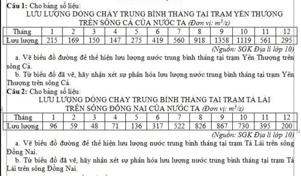 Câu `1:` Qua bảng số liệu ta có thể rút ra nhận xét lượng nước trung bình `(m^3)` trạm Yên Thượng trên sông Cả như sau: