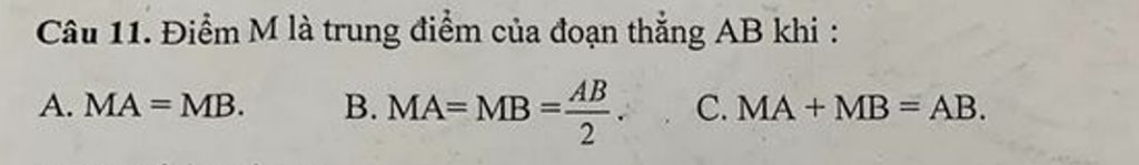 điểm `M` là trung điểm của đoạn thẳng `AB` thì phải theo điều kiện :