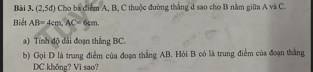 `=>` `B` có là trung điểm của đoạn thẳng `DC`