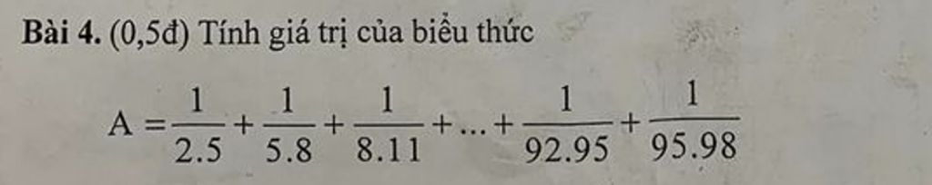 `A=1/2.5 +1/5.8+1/8.11 +...+1/92.95 + 1/95.98`