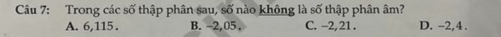 `=>` Loại `B,C,D` vì nó là số thập phân âm
