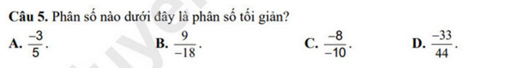 `A.` Chọn vì đây là phân số tối giản