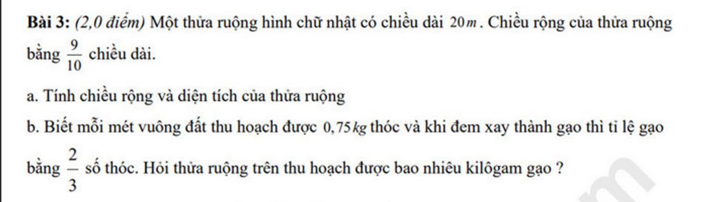 Chiều rộng thửa ruộng là: